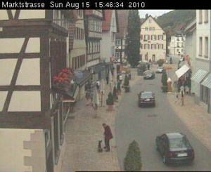Teil 2 des Nachmittags war komplett meiner Bespaßung gewidmet. In Nagold Downtown wartet nämlich ein Cache der vom Aussterben bedrohten Kategorie „Webcam“ auf Besucher. Im Gegensatz zu anderen Caches gibt es hier keine zu suchende Dose. Sondern die Aufgabe, ein Webcam-Bild von sich zu »erzeugen«.