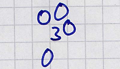 Jetzt brauchen wir eine Null. Das bekommst Du sicher hin, eine Null ist nämlich viel einfacher als eine Drei: Sie sieht aus wie ein Ei.