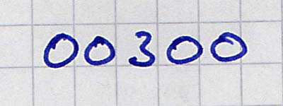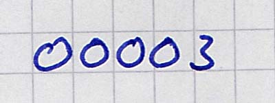 Wie haben wir das vorhin besprochen?! Du fängst mit der Drei an und dann die vier Nullen. Also nochmal machen: Erst die drei und dann die Nullen!