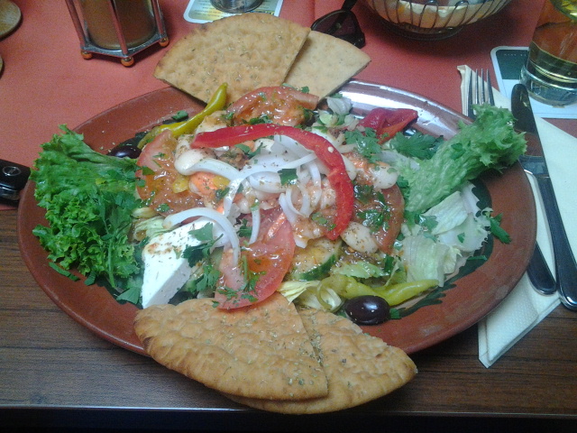 Sogar eine sehr gute Kompromisslösung — den bei Sommerhitze war der Chef-Salat eine angenehm kühle Alternative zum warmen Mittagessen: