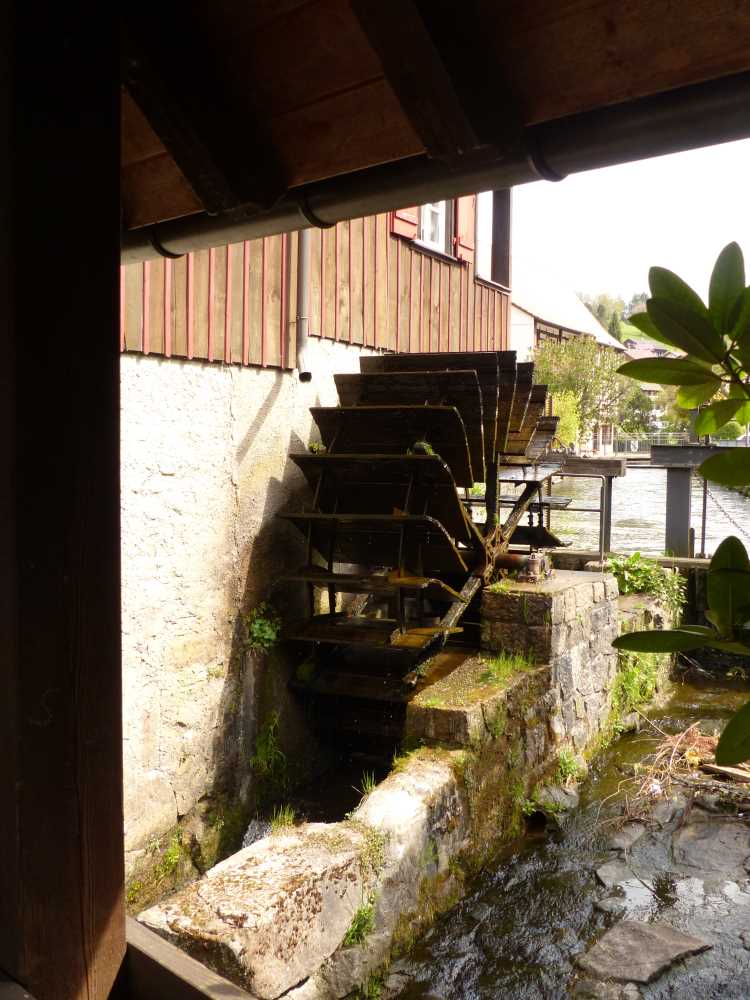 Der kurze Abstecher weg vom Flößerpfad zum Schaufloß lohnt sich unbedingt, zumal hier noch ein schöner Park zur Rast einlädt. Selbst Luis war beeindruckt.