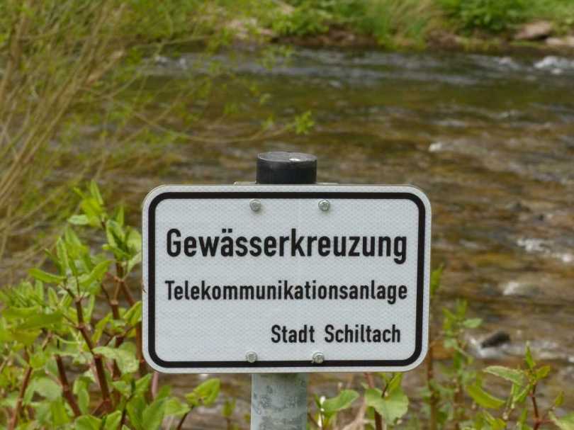 Floesserpfad-080-Gewaesserkreuzung-Telekommunikationsanlage-Schiltach 9. Mai 2015 1000 × 750 Ba[h]lingen-Tour IV: Flößerpfad Alpirsbach — Wolfach Merkwürdige Schilder, Teil 2