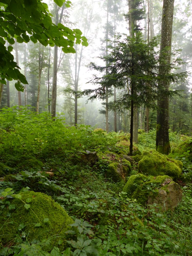 Felsenmeer mit Nebel 1. August 2016 750 × 1000 BL-KN, Tag 1: Balingen — Tieringen Felsenmeer mit Nebel