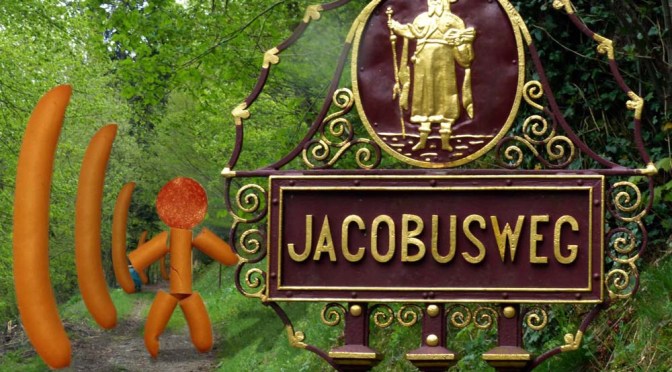 Groß war deshalb Luis‘ Begeisterung über „eine Woche auf dem Jakobsweg“, die Herrchen wichtigtuerisch angekündigt hatte. Die Verbindung Jakob = Saitenwürste ist fest in Luis‘ Synapsen eingebrannt, der Jakobsweg sah in seiner Vorstellung ungefähr so aus: