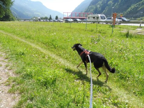Aber sonst: Tutti è Bello 😉 Viel Schatten und der tosende Ticino-Fluss ließen fast vergessen, dass die Autobahn ganz nah ist.