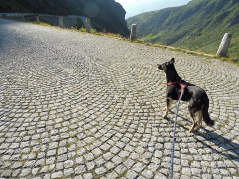 Nach einer ruhigen Juhuu-wir-haben-es-geschafft-Gedenk-Viertelstunde am See mussten wir – schweren Herzens – los. Die alte Pflasterstraße wand sich in kühnen Kurven hinab in die Tremola-Schlucht, der Wanderweg nahm aber meist die Dirrettissima. Luis hüpfte mit seinem Vierradantrieb vergnügt abwärts, für mich war es hingegen eine Herausforderung für Kraft und Konzentration.