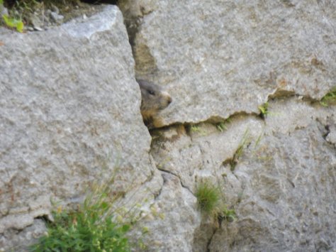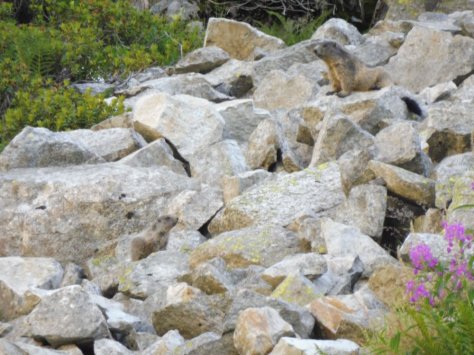Mehrere Alarmanlagen mit Fell beobachteten unseren Marsch und Luis lernte schnell: Da wo es pfeift, da gibt es was zu sehen. Viel praktischer als die nahezu lautlosen Eichhörnchen… Allerdings wendet er das neu erworbene Wissen auch auf kreischende Vögel an und ist irritiert, warum keine Murmeltiere am Himmel fliegen…