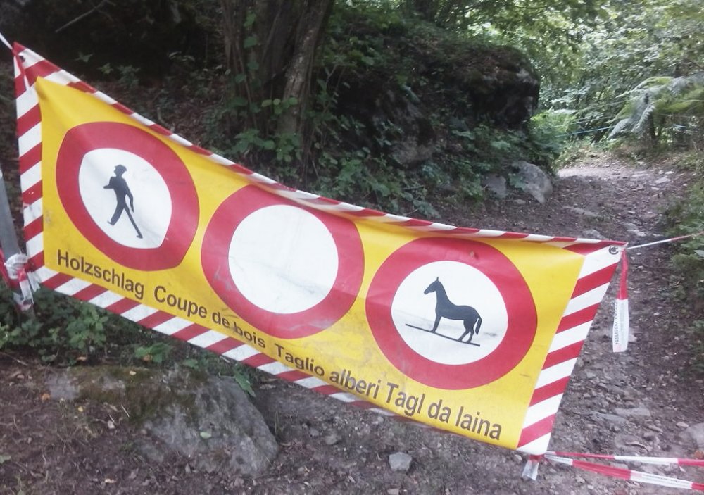 Und ganz oben schockierte uns eine Sperrung mit Lebensgefahr und Forstarbeiten? Alles wieder zurück?!? Ein Beipackzettel gab Entwarnung: Die Bäume haben pünktlich um 12:00 Feierabend und wollen danach nicht mehr gefällt werden.