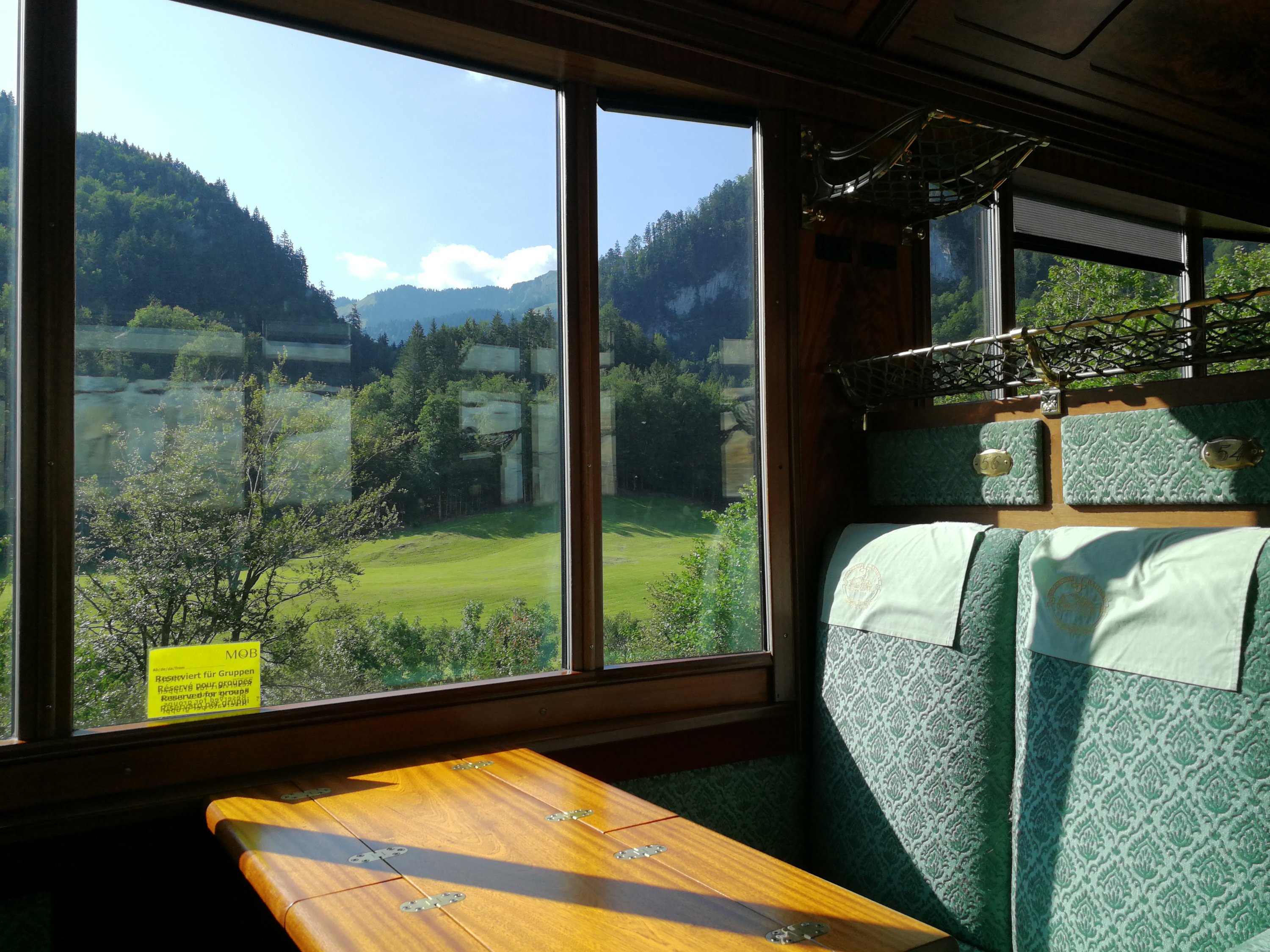 Spektakulär hingegen die Weiterfahrt nach Zweisimmen: Kein profaner Eisenbahnwagen, sondern Belle Époque vom Feinsten (und ohne einen Franken extra). Da wurde die Landschaft (fast) zur Nebensache; ein Hauch von Luxus umwehte mich und Luis: Statt auf kaltem Kunststoffboden durfte er in diesem Zug auf kuschelig-warmen Teppichboden dösen.