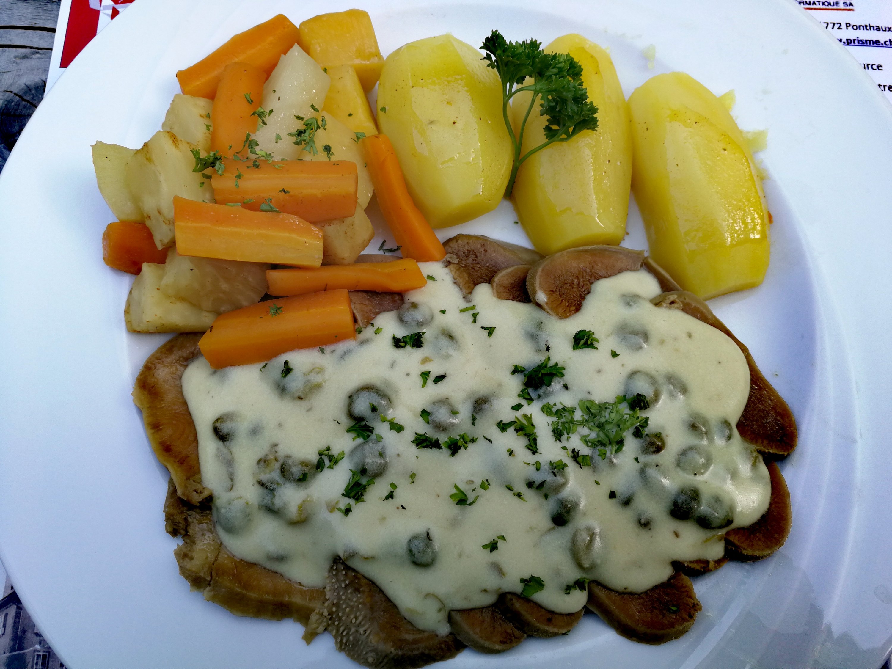 Sehr rustikal und ein wahrer Ort der Entschleunigung. Ob man will oder nicht ;-). Im lauschigen Biergarten wartete ich auf mein Zimmer, panachierte meinen Durst, verköstigte den Käse der hauseigenen Ziegen und genoss die lang vorbestellte und ersehnte Rinderzunge.