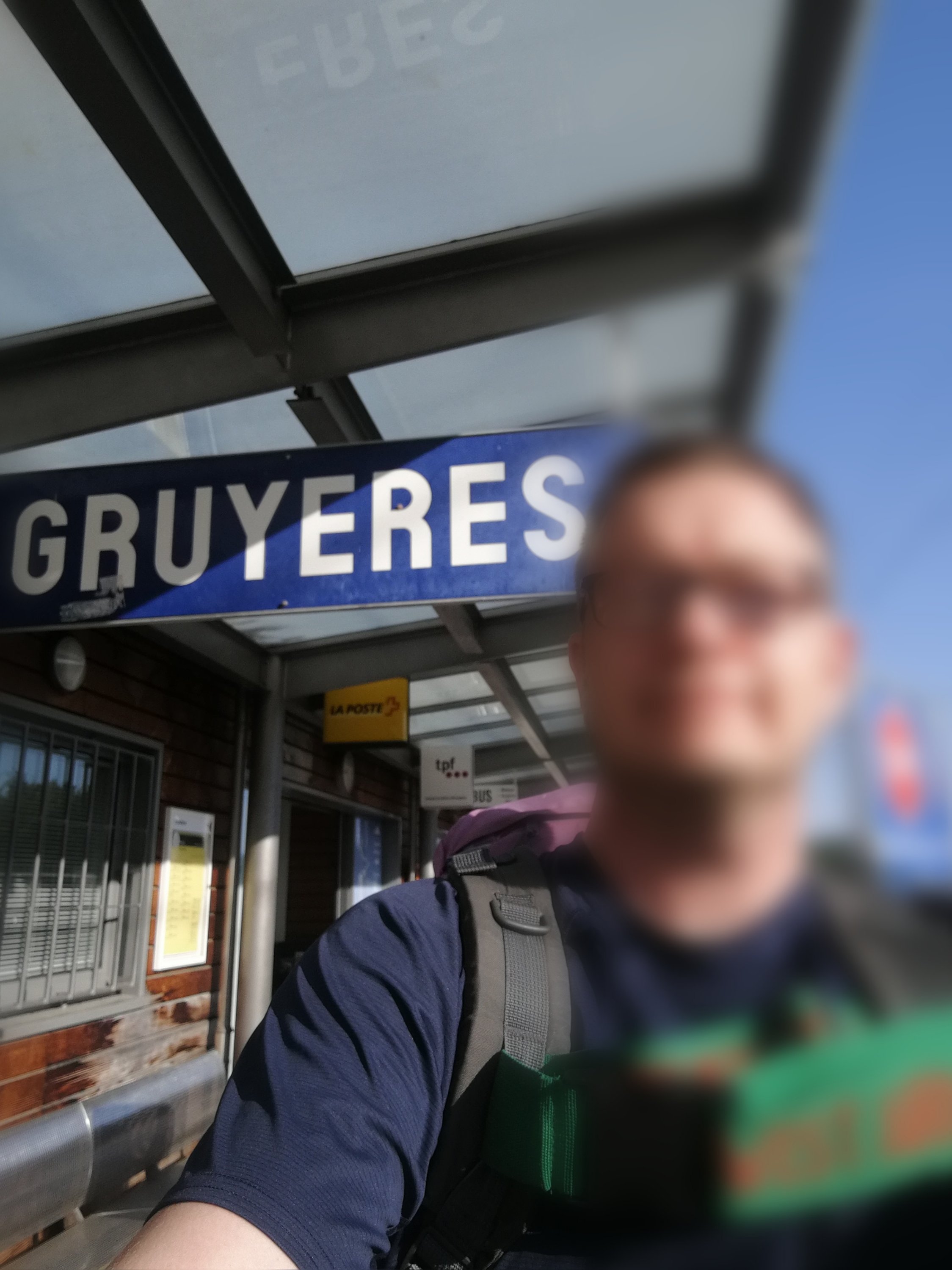 Was tun? Nach intensiver Internet-Recherche beschloss ich, mich zum Bahnhof von Gruyère zu quälen. Zu Fuß und ohne Bus, denn Luis Verdauung nimmt keine Rücksicht auf Herrchens Malaisen. Unendlich langsam humpelte ich an den Gare — und eigentlich wollte ich hier abbrechen: Ticket für mich und Hund nach Rottweil, aber bitte mit der MOB über Zweisimmen – Luzern – Zürich, damit ich wenigstens als Zuschauer noch etwas von den Alpen habe.