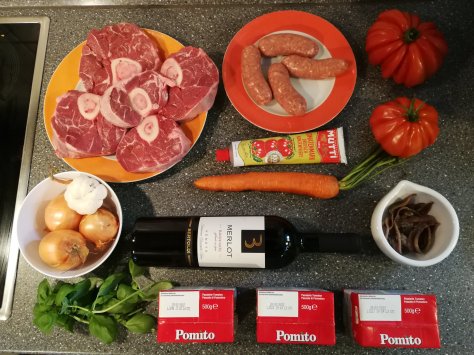 Eigentlich wären wir letzten Samstag nach Cannobio gefahren — mindestens gemütliche 5 Stunden von der Schwäbischen Alb über den San Bernadino ins Piemont. Doch weil wir dieses Frühjahr nicht nach Italien kommen können, kommt Italien in unsere Küche: Ragù con Ossobuco.