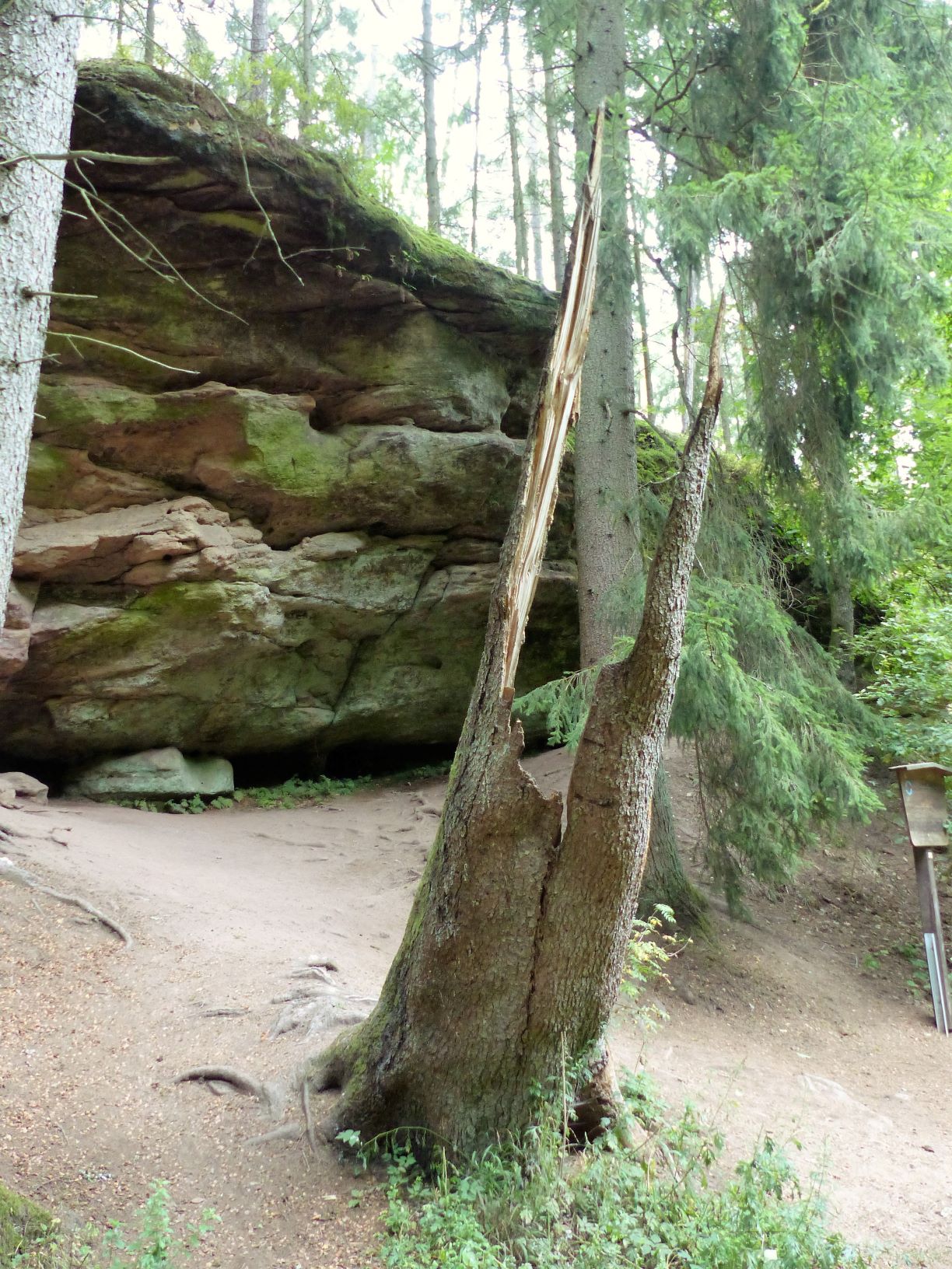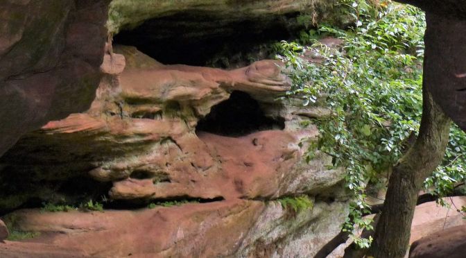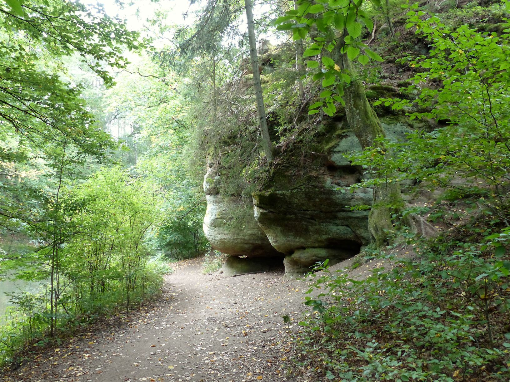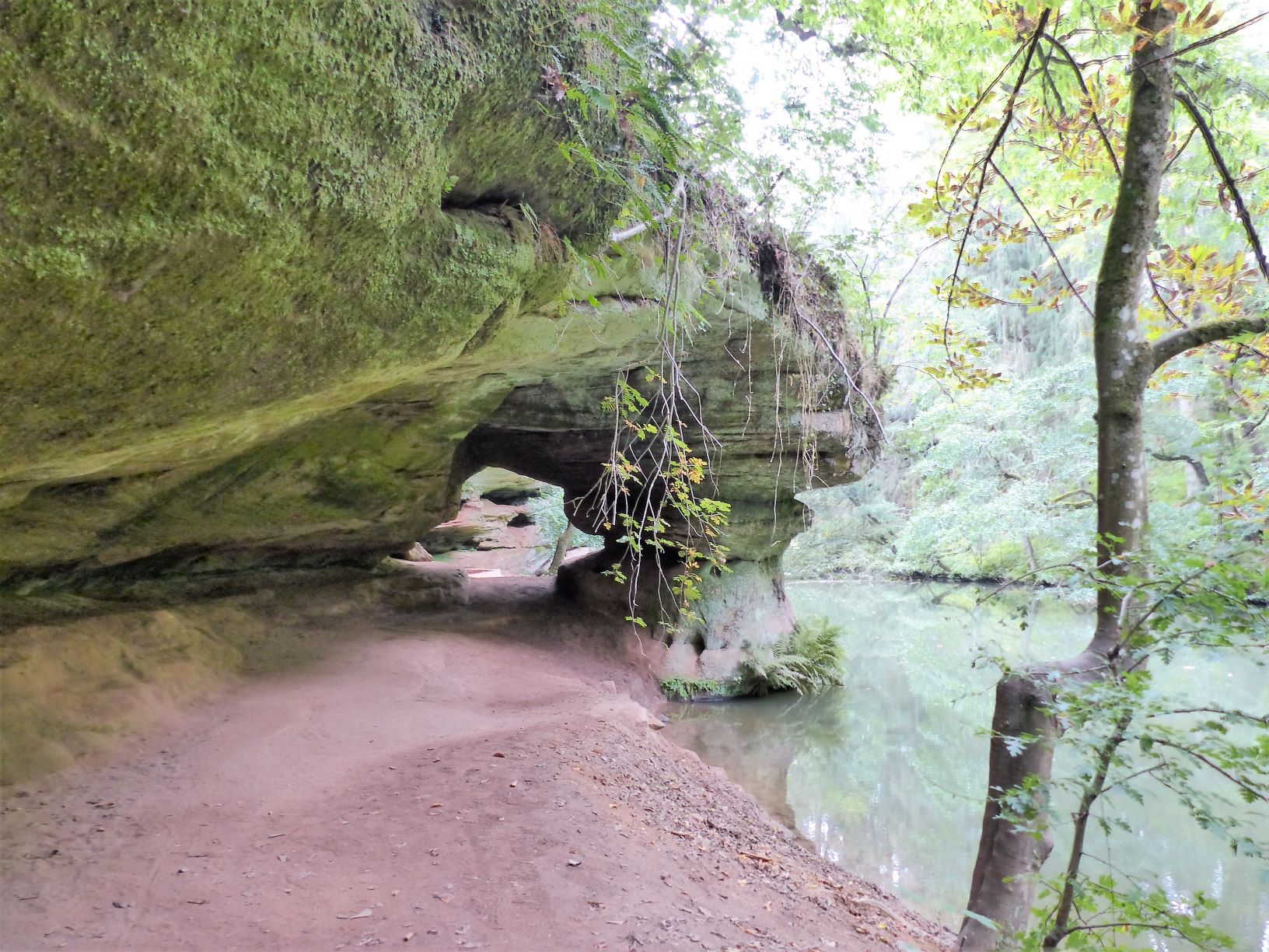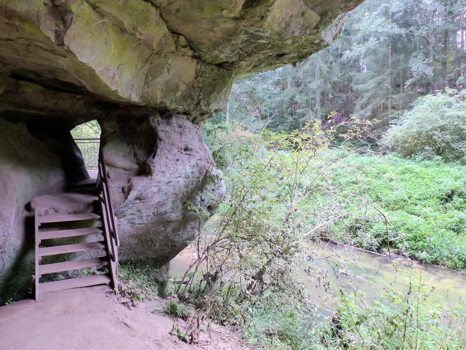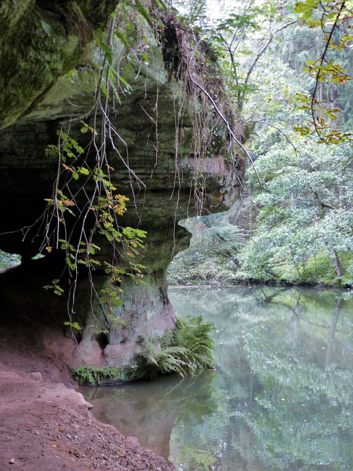 Hier — an der Schwarzach — kam nach wenigen Minuten zur entspannenden Stille doch noch die Klamm hinzu und der Ausflugstipp hatte nicht zu viel versprochen: Spektakuläre Sandsteinformationen, originelle Wegführung, fröhlich plätschernder Bach — es hätte gerne noch ewig so weiter gehen können.