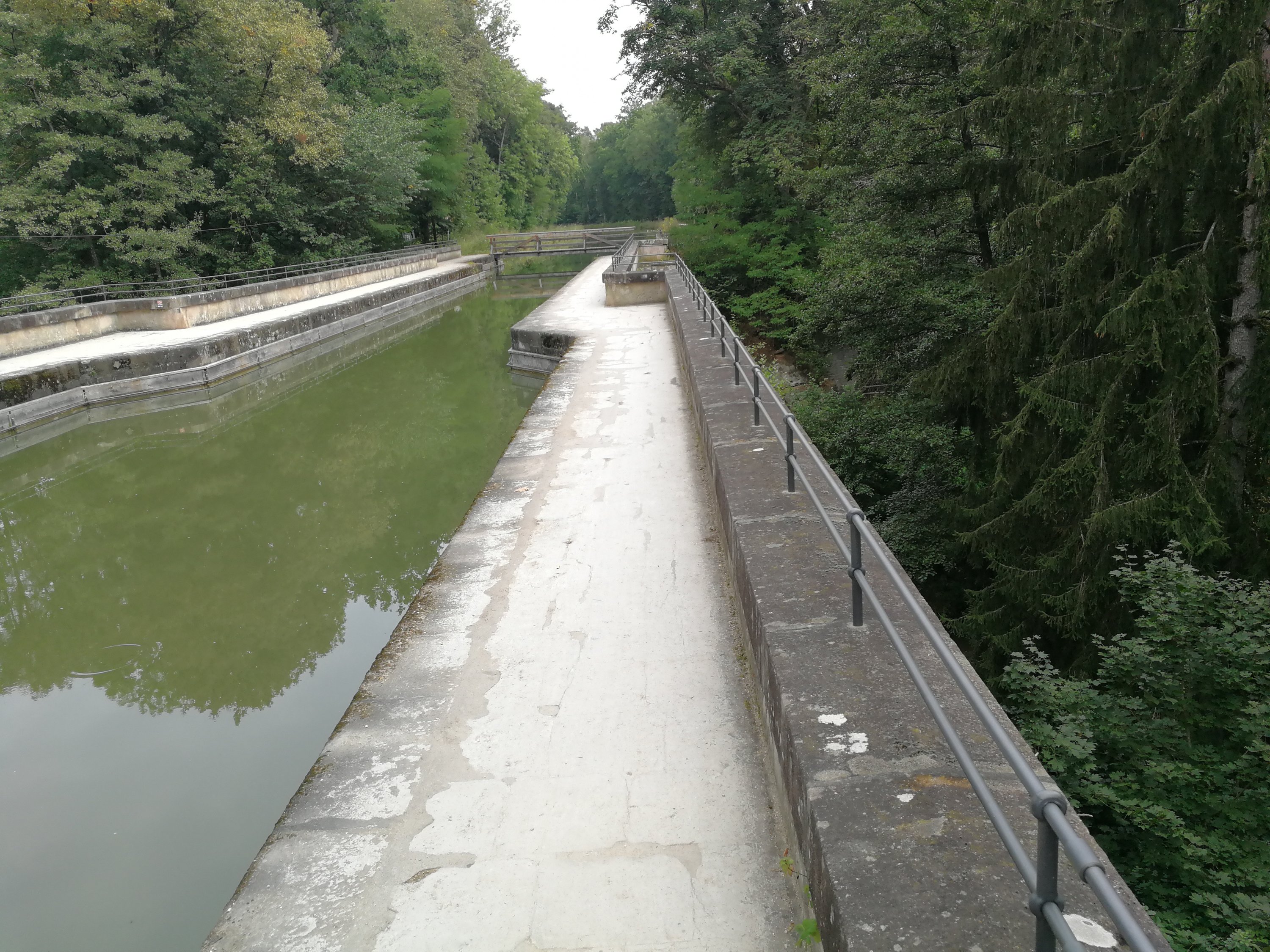 Am Ende belohnte uns noch ein » Historisches Wahrzeichen der Ingenieurbaukunst: Der Brückkanal, mit dem der » Ludwig-Donau-Main-Kanal die 17 Meter tiefer liegende Schwarzach über eine 90 Meter lange Brücke überquert — und das seit 1841!