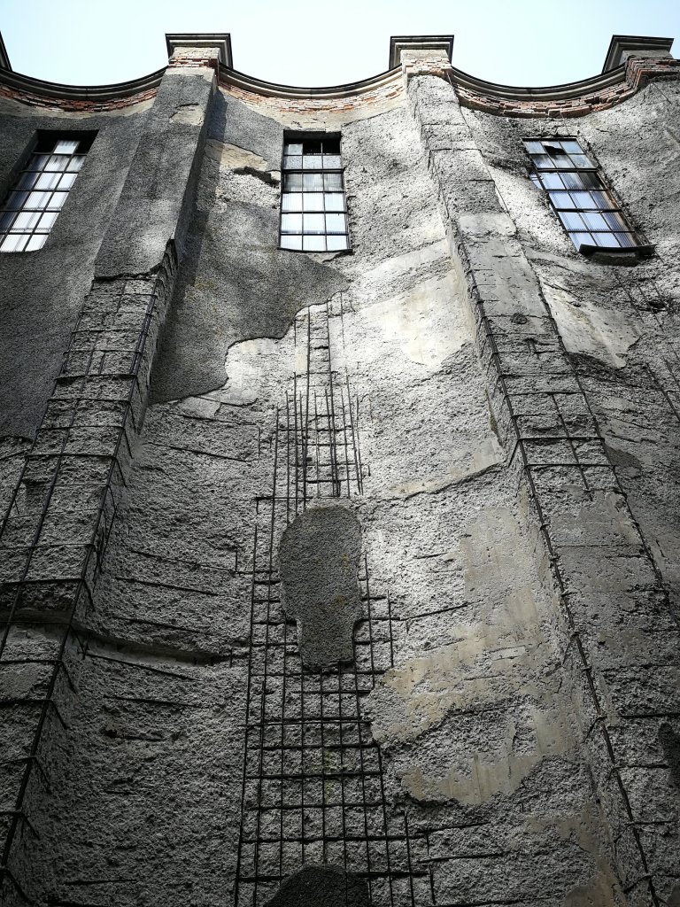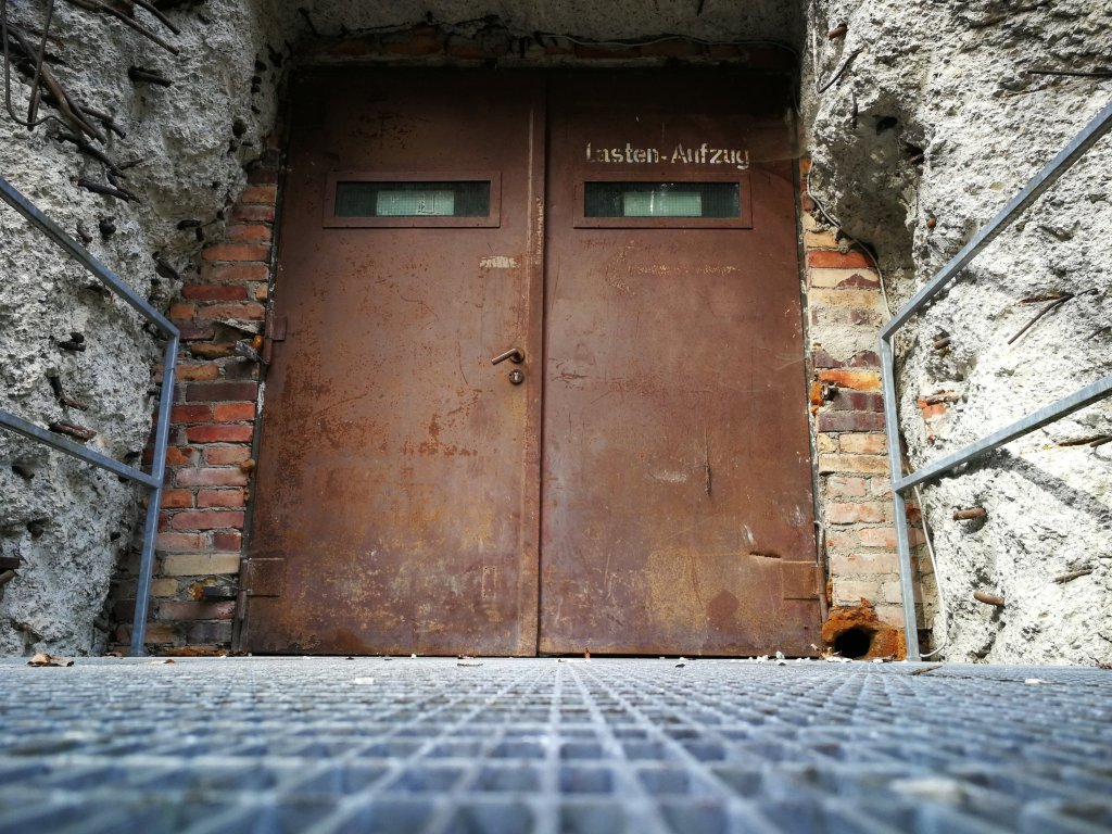 Mein Startpunkt war das » Kraftwerk Rottweil — ein beeindruckendes Industriedenkmal von » Paul Bonatz, das allein schon eine Reise wert ist (und im Gegensatz zu Bonatz‘ Stuttgarter Hauptbahnhof nicht abgesägt und verstümmelt wurde). Links des Kolosses führt ein unscheinbarer Weg nach hinten — kein privater Lieferanteneingang, sondern ganz „offiziell“. Wenn man sich direkt an dem Beton- und Stahlgebirge bewegt, sieht es noch beeindruckender aus als in der Totale.