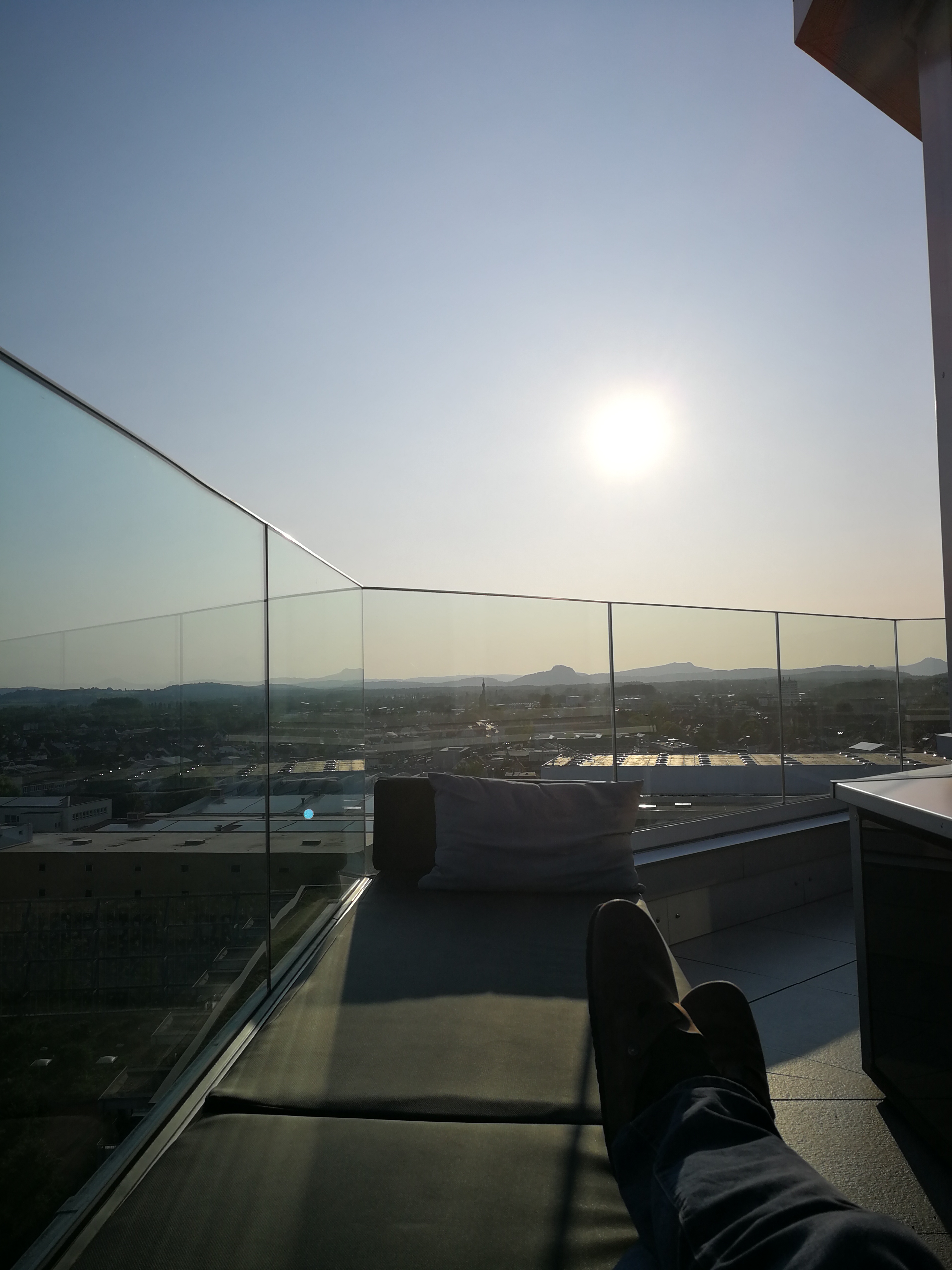 Ohne Hund, aber aus sehr gutem Grund konnten wir dem Gartenschaugehege Ende des Monats entfliehen — hoch über den Dächern genossen wir den herrlichen Ausblick auf Radolfzell und den herrlichen Rückblick auf ein Vierteljahrhundert.