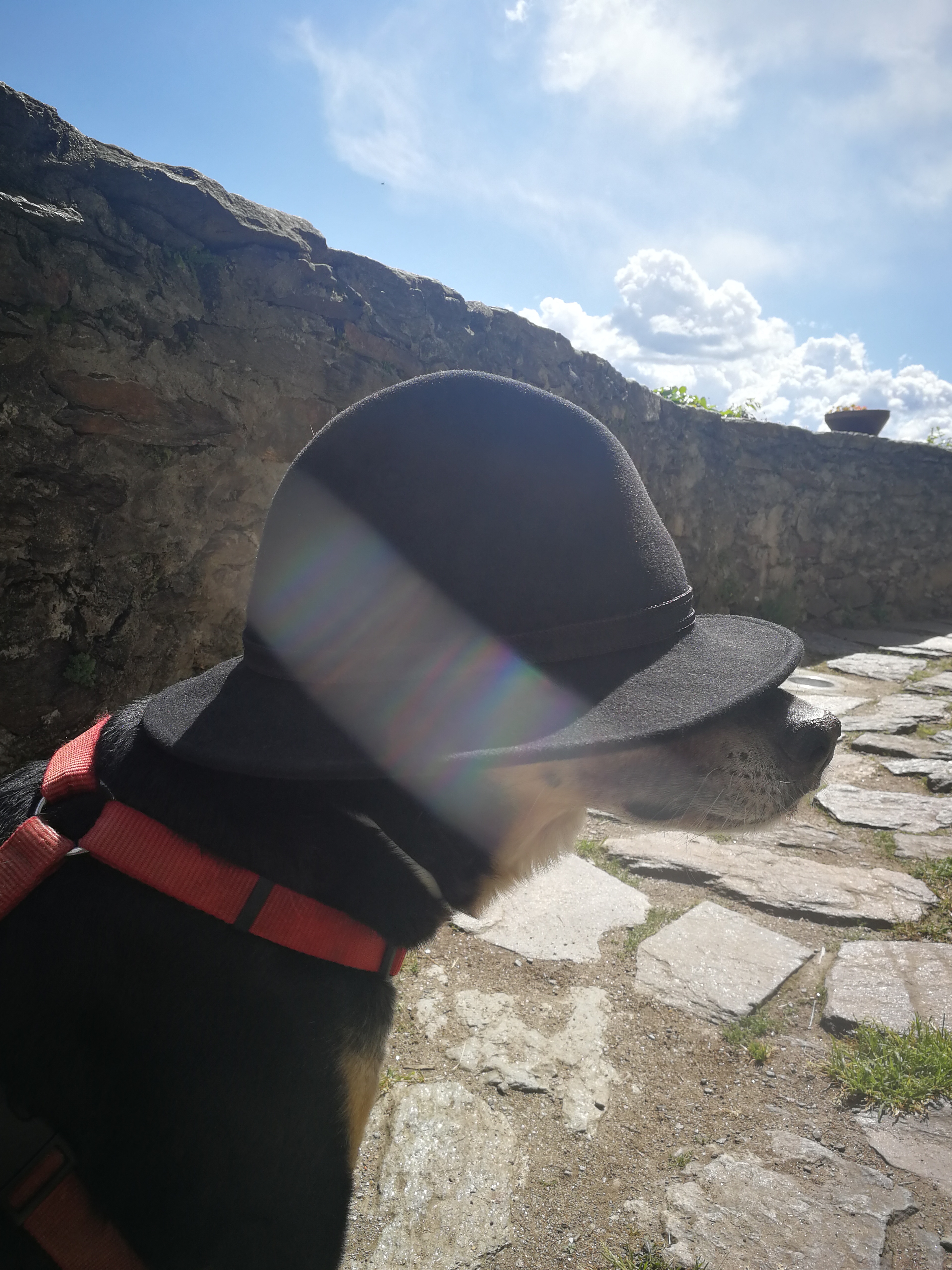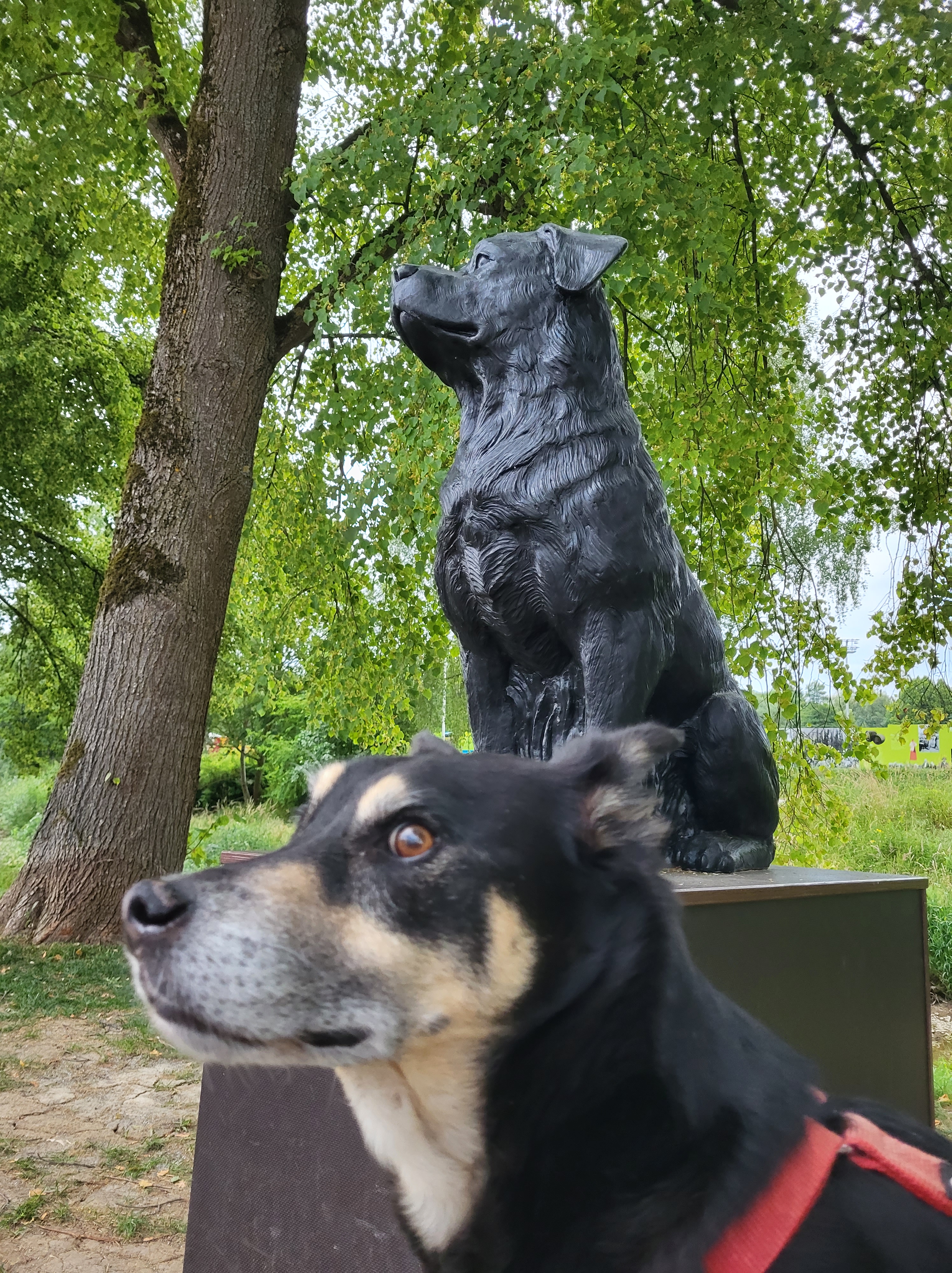 Mit schwarzem Fell ist „Nichtstun“ die einzig sinnvolle Tätigkeit im August — zu viel Sonne, zu viel Hitze und zu wenig Schatten (wenn alle Alleen abgeriegelt sind). Zwingend notwendige Gänge führt man hund sinnvollerweise in den Nacht- oder Morgenstunden durch.