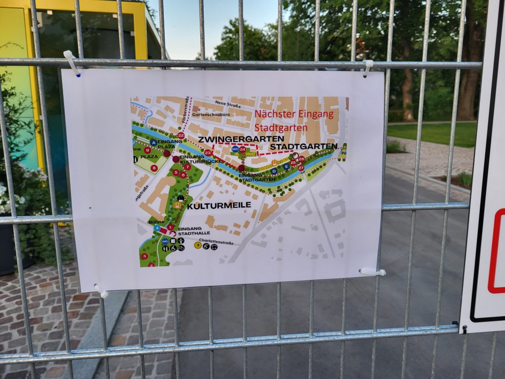 Zuhause sind die Lotsendienste für verwirrte und verärgerte Gartenschaubesucher tägliche Routine geworden. Die Stadtverwaltung macht halt zum ersten Mal eine Gartenschau und auch die zugekauften „Experten“ können nicht wissen, dass man einen gut versteckten Eingang auch verständlich ausschildern könnte. Gerüchten zufolge sollen engagierte Bürger gratis nachgeholfen haben, damit „ihre“ Stadt nicht ganz so doof da steht. Das gibt dem Wort „Schildbürger“ eine völlig neue Bedeutung….