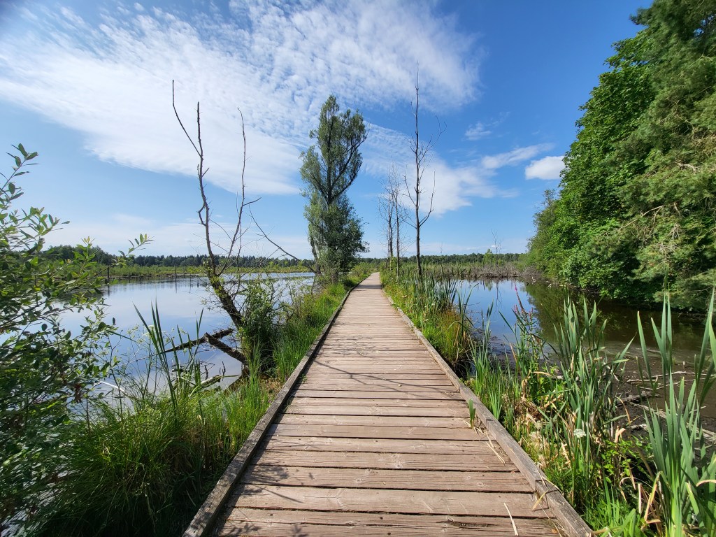 Zum anderen habe ich — als Alternative zu den gescheiterten zbV-Wochenenden — einen 14tägigen Frei-Tag eingeführt. Den ersten habe ich sofort für einen Ausflug ins Schwenninger Moos genutzt. Warum? Erste Antwort: Warum nicht? Zweite Antwort: Weil dort alles begann (» Neckarweg I: Schwenningen – Deißlingen).