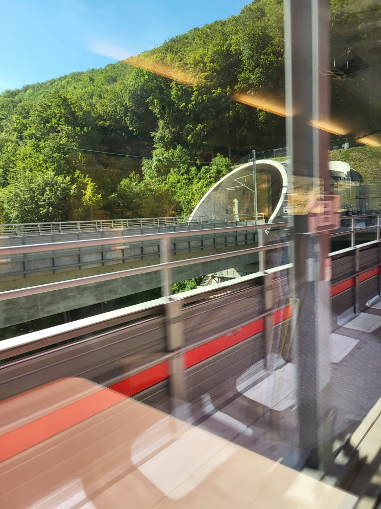Und wie immer konnten wir dort noch etwas Neues „entdecken“: Diesmal eine spektakuläre Bahnfahrt auf den Monte Generoso, wo wir Mario Bottas Architektur bewunderten — aber auch die sensationelle Fernsicht, die uns von den luftreinigenden Regengüssen der Vortage geschenkt wurde.