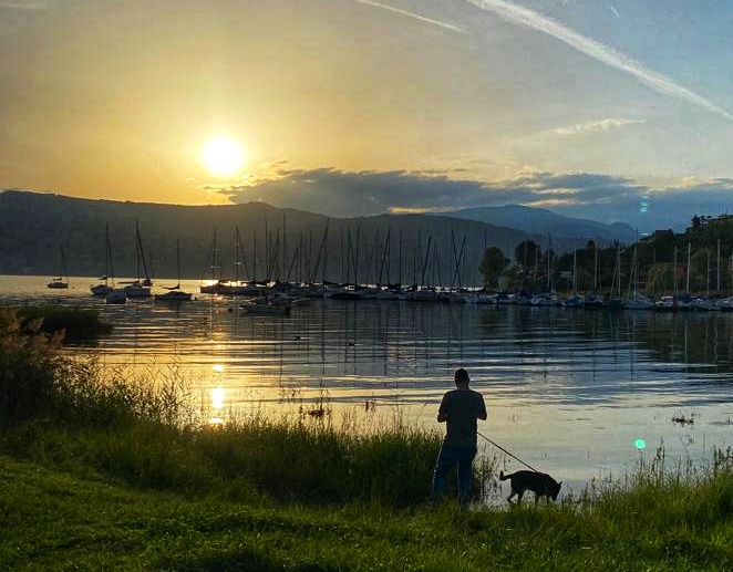 Zur Überraschung unserer Mitmenschen verbrachten wir unseren diesjährigen Zweiturlaub am Lago Maggiore. Ja, sehr überraschend, weil wir dort üblicherweise nur einmal im Jahr sind. Noch überraschender: Nicht Cannobio, sondern am anderen Ufer und südlicher in Monvale. Ganz andere Landschaft, viel weniger überlaufen, eine grandiose Gastgeberin1 mit tollen Restorante-Tipps und riesiger Garten mit direktem Seezugang vor der Nase (bzw. Schnauze).