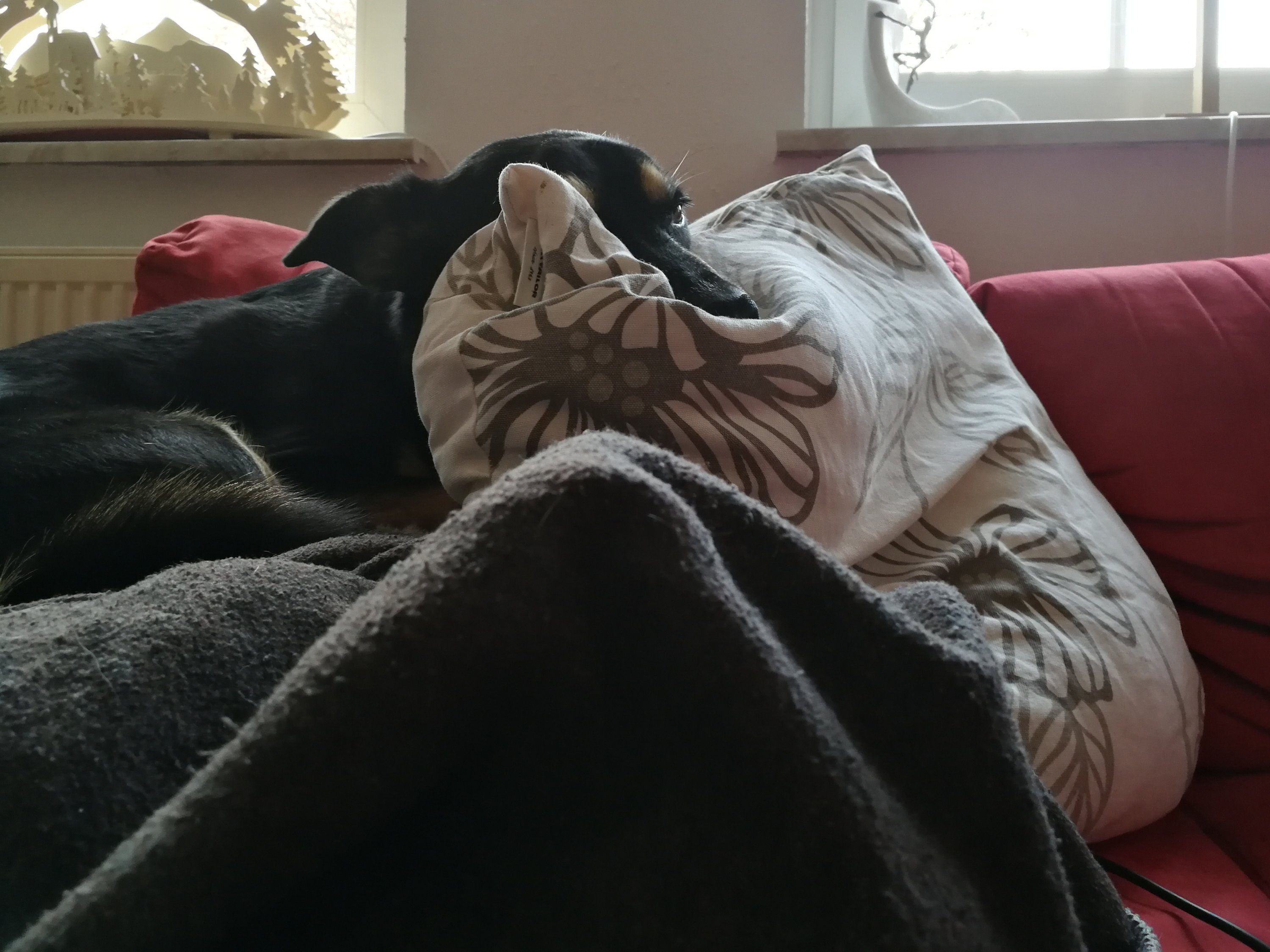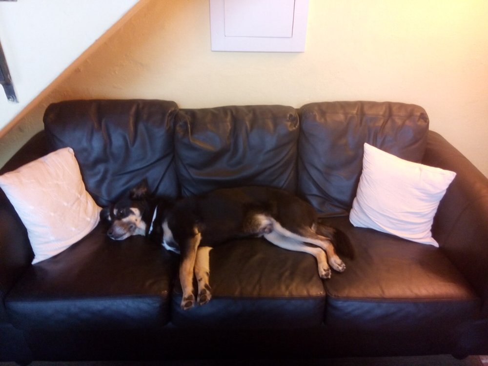 Suchbild: Auf diesem Sofa ist ein Hund versteckt