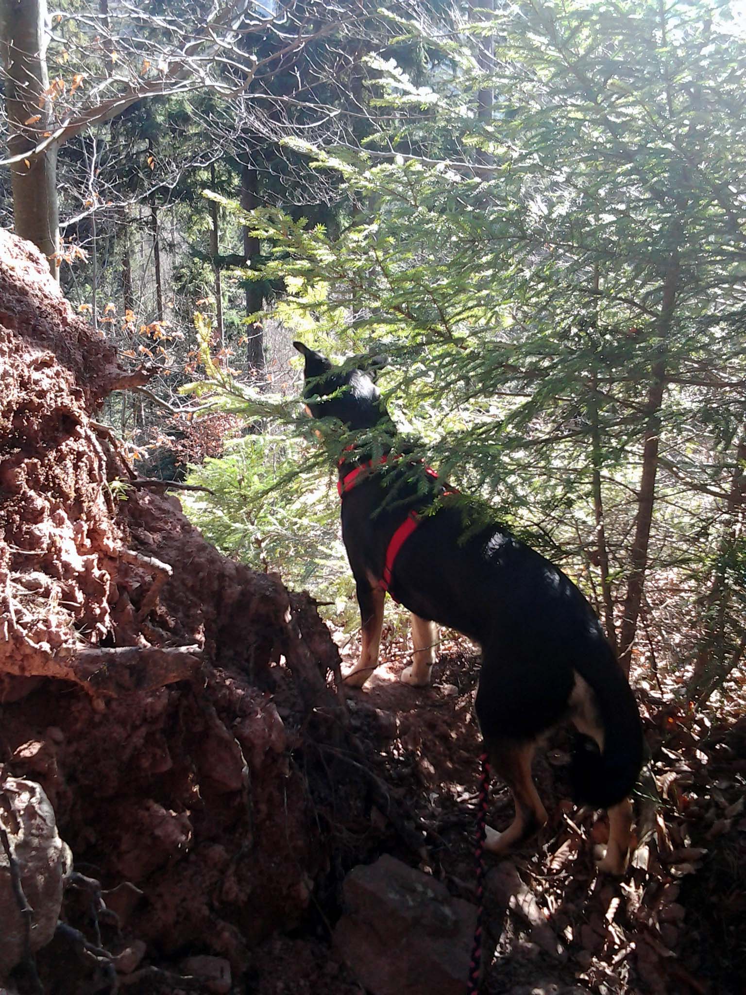 Nach der ereignisreichen Anreise ging es gleich ans Eingemachte in Gestalt der Teufelsrunde im Nagoldtal. Eine so genannter Power-Trail: Eine Rundwanderung mit Geocaching-Statistik-Booster: Eine Dose an der anderen. Da freut sich der Dosensammler, während der Hund von dem Stop-and-Go auf Waldwegen nur bedingt begeistert ist.